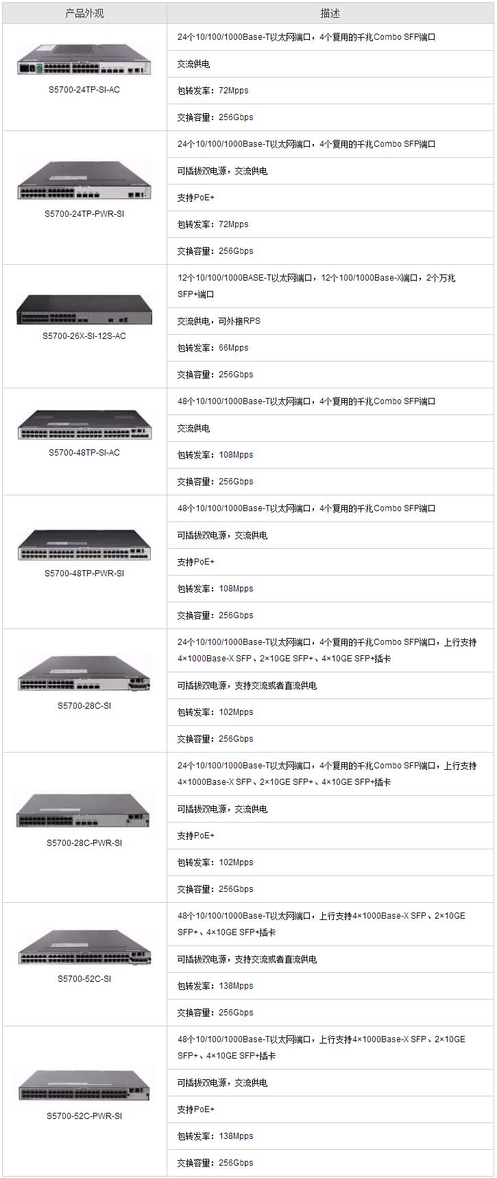 S5700-SI标準型千兆以太網交換機系列(以下簡稱S5700-SI),是華為公司自主研發的二層/三層千兆以太網交換機,提供靈活的全千兆接入以及萬兆上(shàng)行(xíng)端口。該系列交換機基于新一代高(gāo)性能硬件和(hé)華為公司統一的VRP(Versatile Routing Platform)軟件平台,具有(yǒu)智能iStack堆疊,靈活的以太組網,多(duō)樣的安全控制(zhì),成熟的IPv6特性,輕松的運行(xíng)維護等特點,廣泛應用于企業園區(qū)接入和(hé)彙聚、數(shù)據中心接入等多(duō)種應用場(chǎng)景。