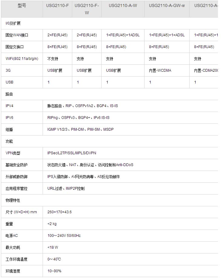 USG2110 系列是專門(mén)面向中小(xiǎo)企業、連鎖機構、營業網點、SOHO企業推出的網絡互聯設備。該系列産品集防火(huǒ)牆、UTM、VPN、路由、無線(WIFI/3G)功能于一體(tǐ),能夠将多(duō)種業務部署在同一節點,在充分節約用戶投資的情況下提供安全、靈活、便捷的一體(tǐ)化組網和(hé)接入解決方案,有(yǒu)效降低(dī)運維成本。