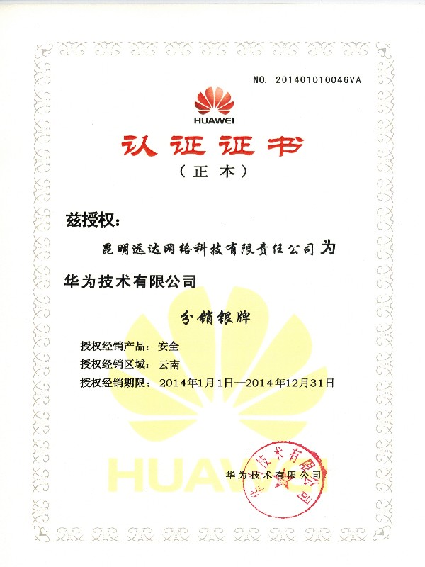 華為優選合作(zuò)夥伴證書(shū)